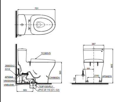 Bồn Cầu TOTO MS885DT3 1 Khối