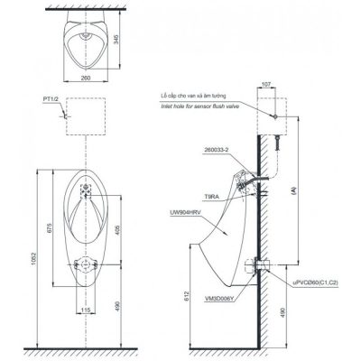 - Mã sản phẩm : UT904HR là bồn tiểu nam treo tường của thương hiệu TOTO