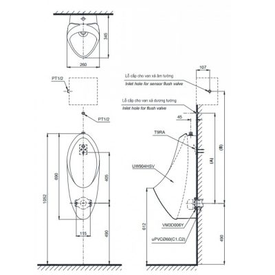 - Mã sản phẩm : UT904N là bồn tiểu nam treo tường của thương hiệu TOTO